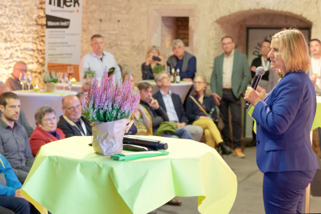 Ganz besonders gefreut haben wir uns über den Besuch und das Grußwort der rheinland-pfälzischen Umweltministerin Katrin Eder. Mit uns gefeiert haben außerdem Vertreter:innen von Unternehmen, auf deren Dächern wir in den vergangenen Jahren Solarkraftwerke errichten konnten, sowie der Solarfirmen, die diese Anlagen für uns gebaut haben.